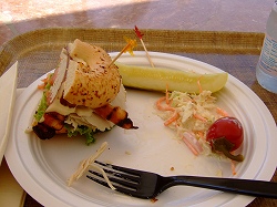 そして私たちのテーブルも例にもれず、私の食べてるターキーのベーグルサンドイッチを狙ってるのか