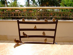 カフェ・クラのバルコニーの下には緑豊富な中庭があるのでたくさんの鳥が棲んでいます。