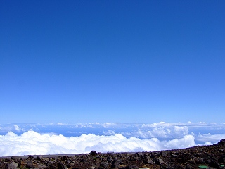 ハレアカラはたいてい雲に覆われているんですが、車で山頂まで行くとくっきり鮮やかな青空が!
