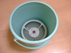 熱湯3リットルに粉石けん1/2カップ分を溶いたものにシロッコファンを漬け込んでみました。