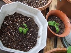 摘心したら同じ鉢なのに左の方のバジルだけ