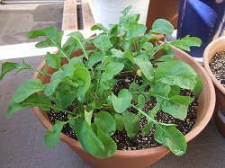 明日はルッコラでサラダを作る予定でーす。いやー、ベランダ家庭菜園ハマりますね![ピカッ]