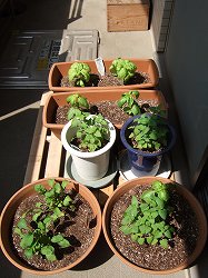 奥から、レタスバジル、スイートバジル、キャットニップ、ルッコラ、キャットニップ&バジル混合 です。