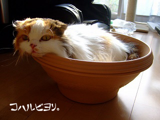 こはが鉢の中でくつろぐのが好きなことは以前も書きましたが、相変わらず鉢ベッド(?)が