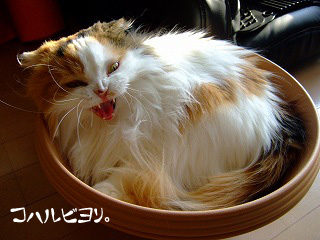 [あはは] 鉢の下がすぼまってるので、確かに居心地よいのか気になって、敷物入れてあげたくなりますね。ハニボンも敷物とかふわふわなものの上より、雑誌の裏表紙とか、びたっとした面が好きだったりします。 姫様〜お気に召したわの怖い顔 [ヒヤリ] してもやっぱりかわいいわ[ハート]