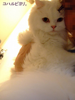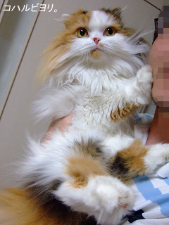 オットさんと、にゃんちゃんたちの 美しい再開の姿、感動的です! コハちゃんは、ほんとに何だか 左手でつっぱって、ささやかに 抵抗しているようで、何とにゃく おかしかったですニャ。