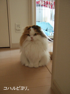 あまりの毛ぶきのよさに、最後のゴロンで後ろ足がとってつけたかのようですニャ。さらにマロン色の髪の毛はまるで3箇所でくくってる見たいで[あはは]飛んでますわ〜思わずマジマジと見つめてしましましたニャ。