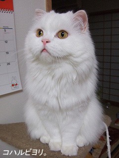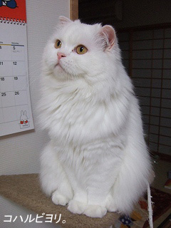 真っ白の毛並みがキレイですニャ。ほっぺグリグリしたいですよ〜[えへへ] いつか白猫と黒猫とも暮らしたいのですよね。にゃんていってると人間の住む場所がにゃくにゃってしまう…。