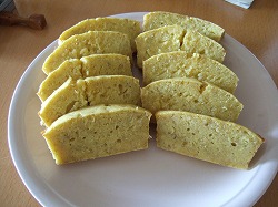 こうやって写真でみると、パウンドケーキというより厚焼き玉子みたいですね〜ビミョウ(・∀・)ビミョウ